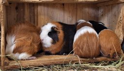 - Beschreibung: Die quirlige Meerschweinchen-Familie – Robert, Carmen, Shania und Davina – wartet auf liebe Menschen, die ihnen ein schönes, dauerhaftes Zuhause schenken. Papa Robert (inzwischen kastriert) und Mama Carmen wurden etwa im Januar 2025 geboren, ihre süßen Töchter Shania und Davina kamen im Juni 2025 zur Welt. Die vier sind ein richtig eingespieltes Team – lebhaft, neugierig und immer in Bewegung. Noch zeigen sie sich ein wenig schüchtern, doch man merkt schnell, dass sie immer zutraulicher werden und Vertrauen fassen. Mit ihrer fröhlichen Art sorgen sie für beste Unterhaltung – echte kleine „Geissens“ eben! Wir wünschen uns für die Familie ein großzügiges, artgerechtes Zuhause, in dem sie gemeinsam bleiben dürfen. Ein Gehege mit viel Platz, frischem Futter, Rückzugsmöglichkeiten und täglicher Zuwendung wäre perfekt. Wer also vier charmanten, leicht verrückten Fellnasen ein liebevolles Zuhause schenken möchte, darf sich gerne bei uns melden!