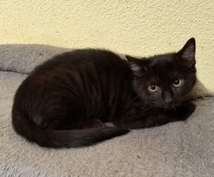 - Beschreibung: Die kleine Umi ist eine ganz besonderes junges Katzenmädel. Sie trägt ein elegantes Fell in schwarz auf schwarz getigert – eine Zeichnung, die man nicht alle Tage sieht und die sie zu einer besonderen Schönheit macht. Umi ist jetzt in dem Alter, in dem sie ohne ihre Mama zurechtkommt. Was sie jedoch dringend braucht, ist eine liebevolle Familie, die ihr Sicherheit gibt und sie mit Geduld in ihrem neuen Leben begleitet. Denn Umi ist noch eher schüchtern und braucht etwas Zeit, um Vertrauen zu fassen. Sobald sie Vertrauen aufgebaut hat, entwickelt sie sich bestimmt zu einer anhänglichen und treuen Gefährtin. Wie alle jungen Katzen ist Umi neugierig und verspielt. Deshalb wünscht sie sich unbedingt einen Katzenfreund im ähnlichen Alter, mit dem sie spielen, toben und kuscheln kann. Wenn Sie der Samtpfote ein behütetes Zuhause schenken möchten und bereit sind, ihr Zeit und Verständnis zu geben, dann melden Sie sich gerne bei uns. Umi wartet darauf, ihr Herz zu verschenken – vielleicht an Sie?